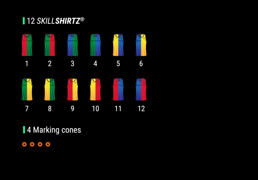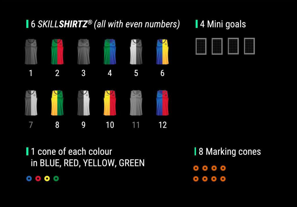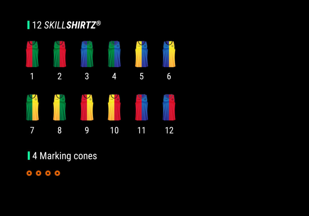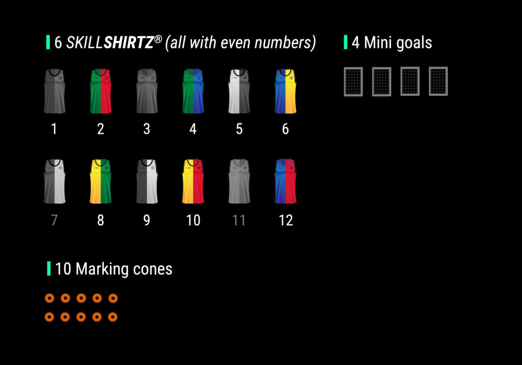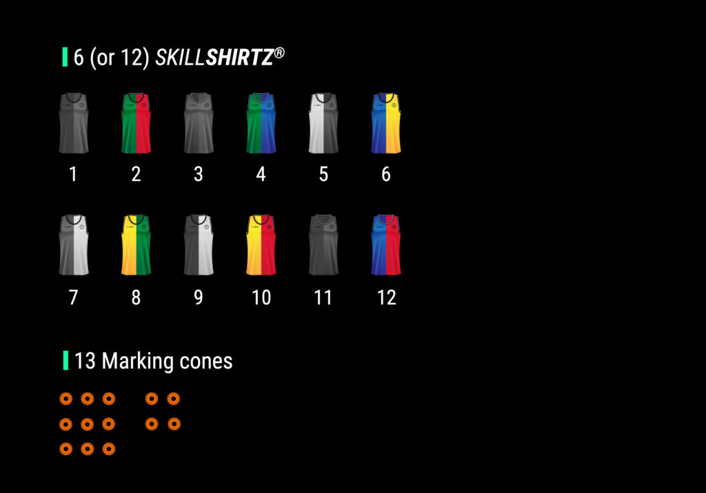 - 10 players with SKILLSHIRTZ 1, 2, 3, 4, 5, 6, 8, 9,10, 12