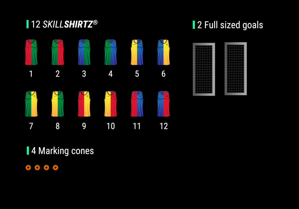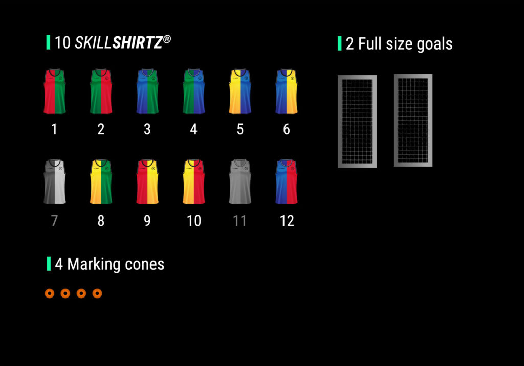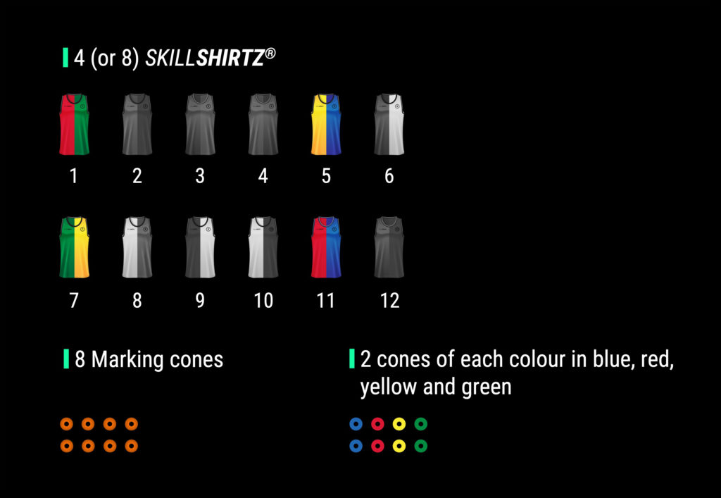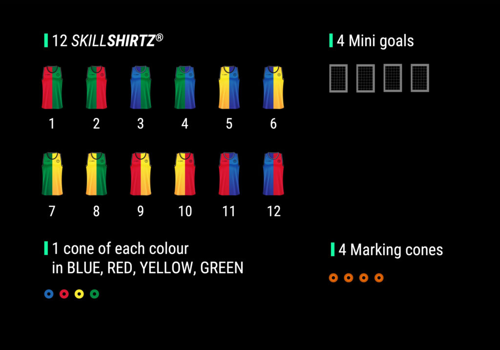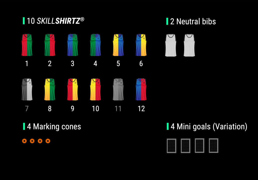 - 10 players with SKILLSHIRTZ 1, 2, 3, 4, 5, 6, 8, 9,10, 12