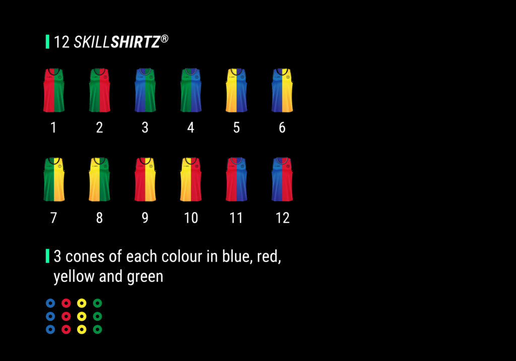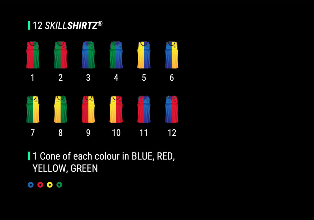 - With each ball brought into play, the coach calls one of the SKILLSHIRTZ colours.