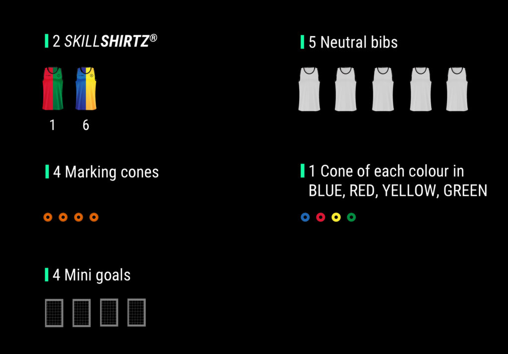 - With each ball the goalkeeper calls a SKILLSHIRTZ colour and sets the teams.