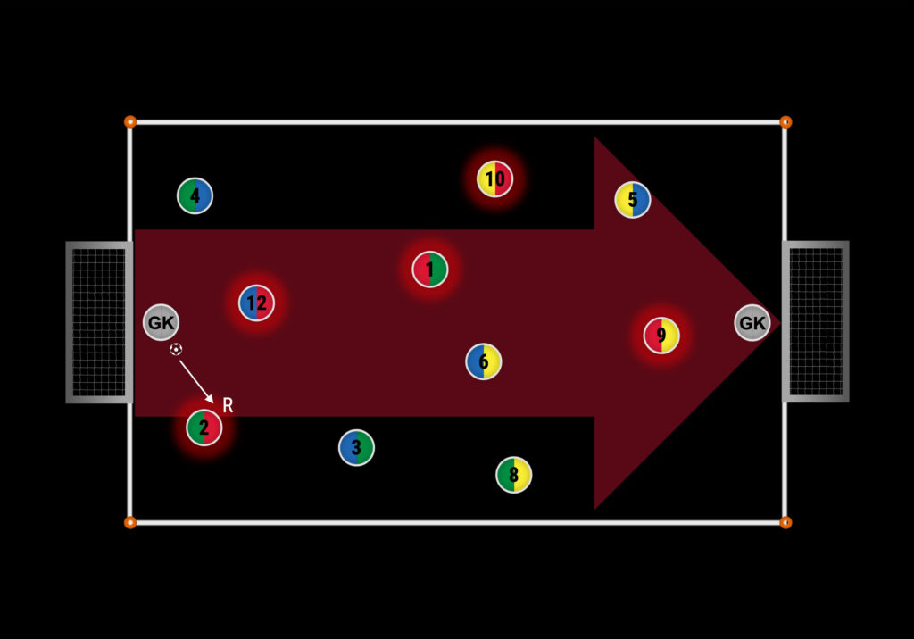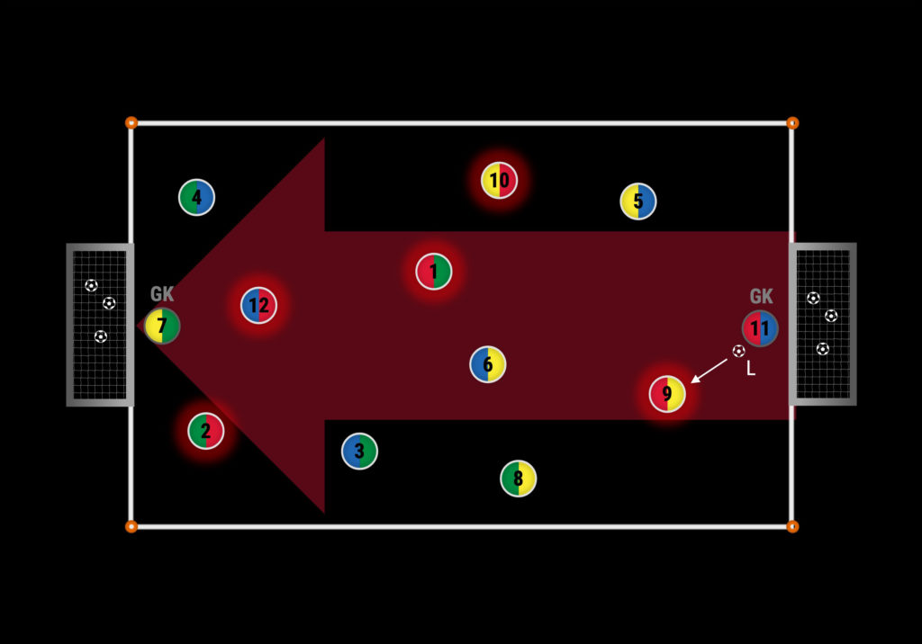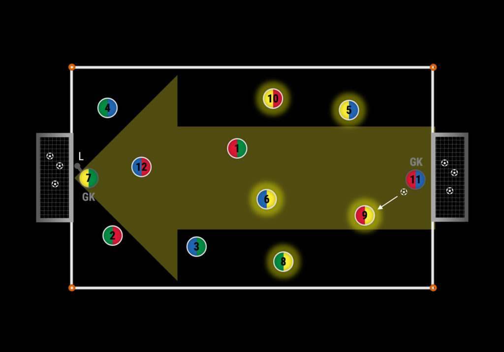 - All players must therefore pay attention to the defending goalkeeper, in order to identify if they themselves must attack or defend.